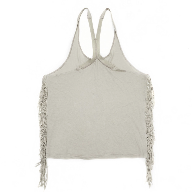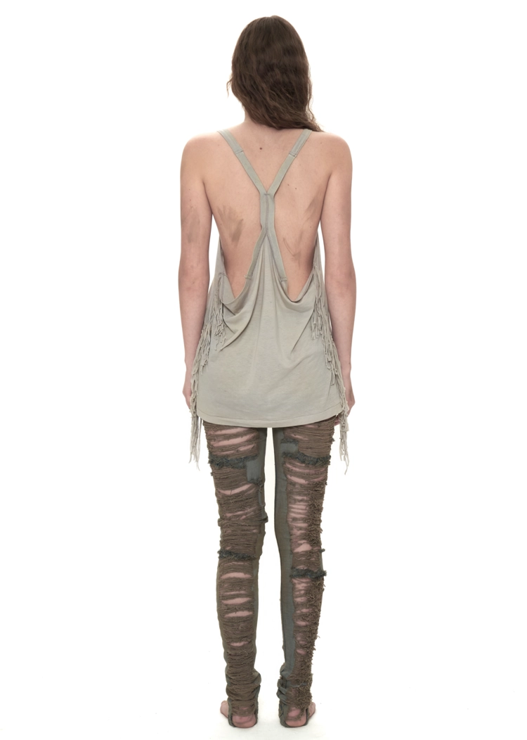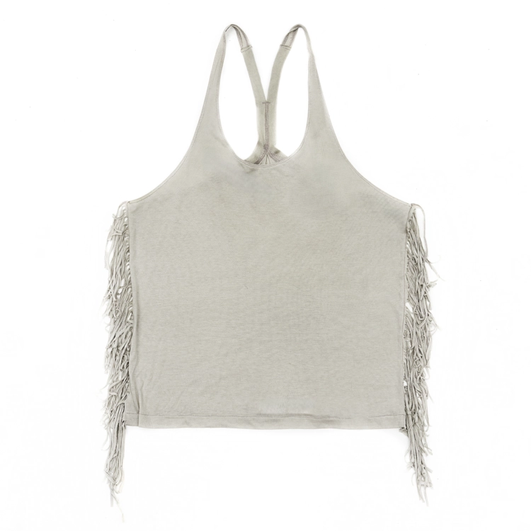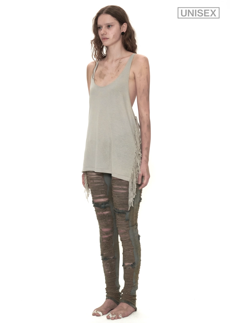 FRINGED DEEP NECK TANK TOP IN SAGE